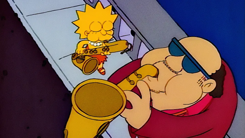 Lisa entend une mélodie venant de l’extérieur. Elle suit le son et découvre Bleeding Gums Murphy, un saxophoniste jouant du blues. Il lui enseigne comment exprimer ses émotions à travers la musique. Marge les surprend et ramène Lisa à la maison.