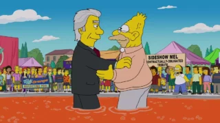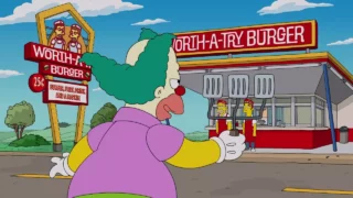 Un flash-back nous apprend que Grampa tenait un restaurant avec un ami, mais Krusty leur a pris leurs idées et les a ruinés. La famille Simpson participe à la foire qui fête les 50 ans des Krusty Burgers. Durant l’événement, Marge propose un hamburger à Grampa, mais il refuse et dit qu’il ne mangera jamais d’hamburger venant de ce Clown. Durant la fête, un vieil homme vient voir Krusty. Il s’agit du partenaire de Grampa de l’époque « Augustus Redfield » dit « Gus ». Il vient se venger du Clown. Il a racheté toutes les sociétés de Krusty et propose à Grampa de sieger au conseil d’administration de son groupe « RedStar ». Grampa accepte uniquement si Lisa vient avec lui …