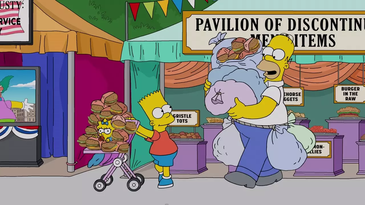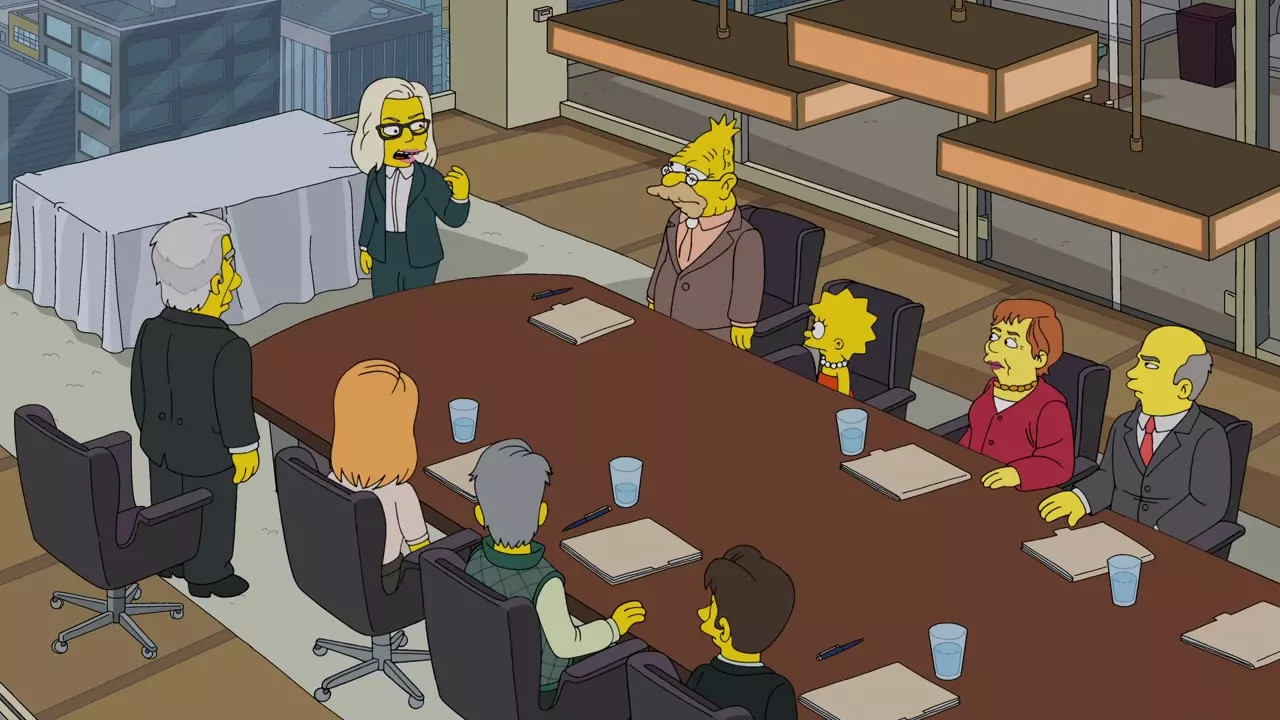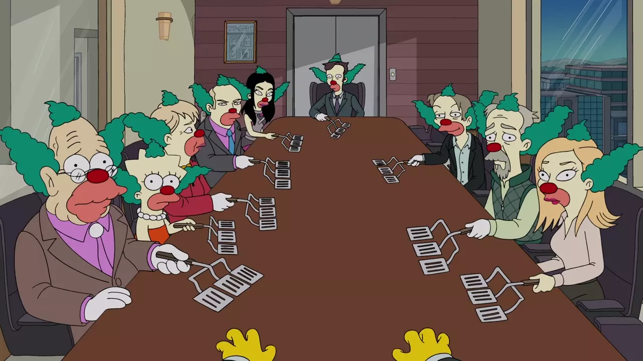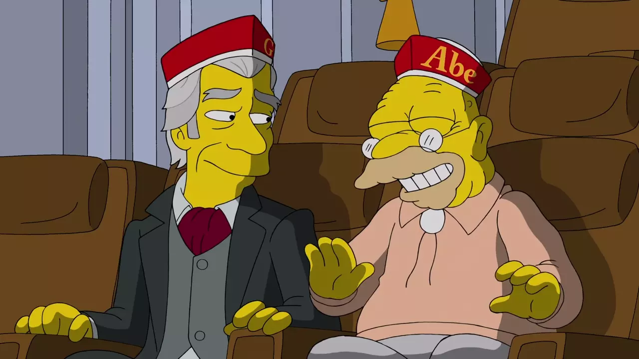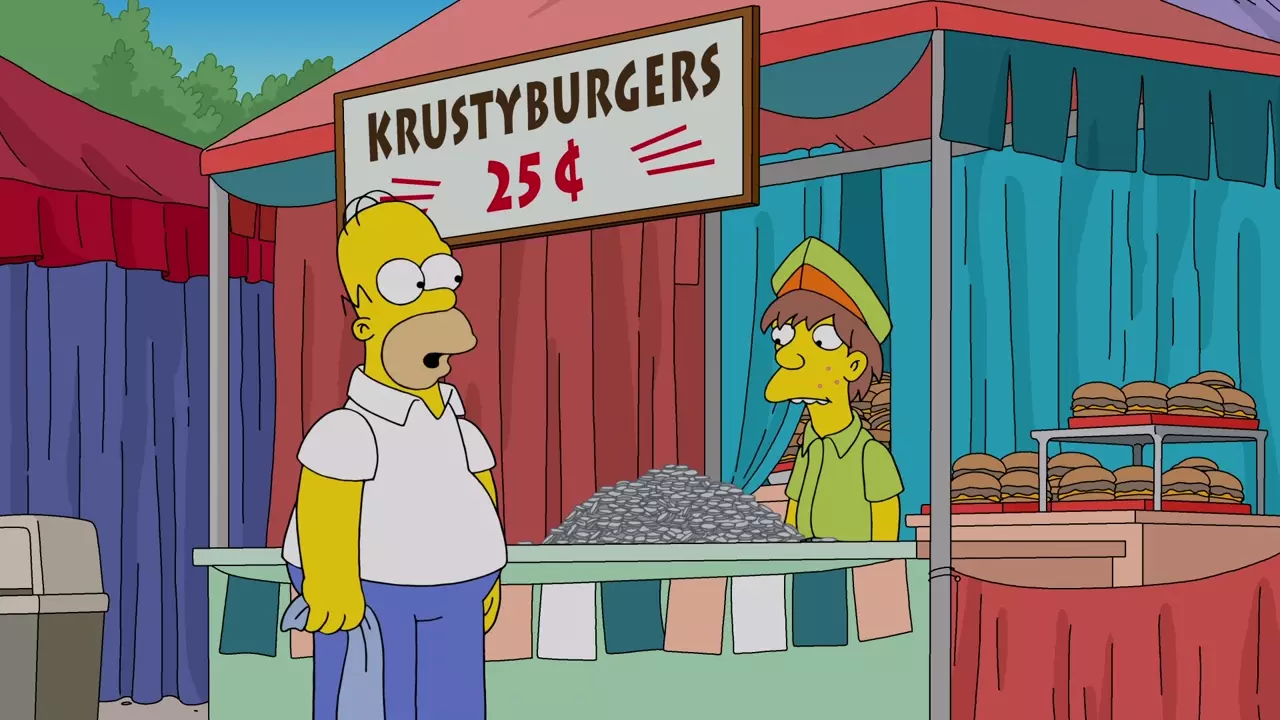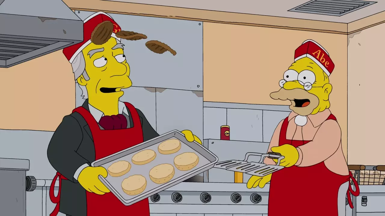 Un flash-back nous apprend que Grampa tenait un restaurant avec un ami, mais Krusty leur a pris leurs idées et les a ruinés. La famille Simpson participe à la foire qui fête les 50 ans des Krusty Burgers. Durant l’événement, Marge propose un hamburger à Grampa, mais il refuse et dit qu’il ne mangera jamais d’hamburger venant de ce Clown. Durant la fête, un vieil homme vient voir Krusty. Il s’agit du partenaire de Grampa de l’époque « Augustus Redfield » dit « Gus ». Il vient se venger du Clown. Il a racheté toutes les sociétés de Krusty et propose à Grampa de sieger au conseil d’administration de son groupe « RedStar ». Grampa accepte uniquement si Lisa vient avec lui …
