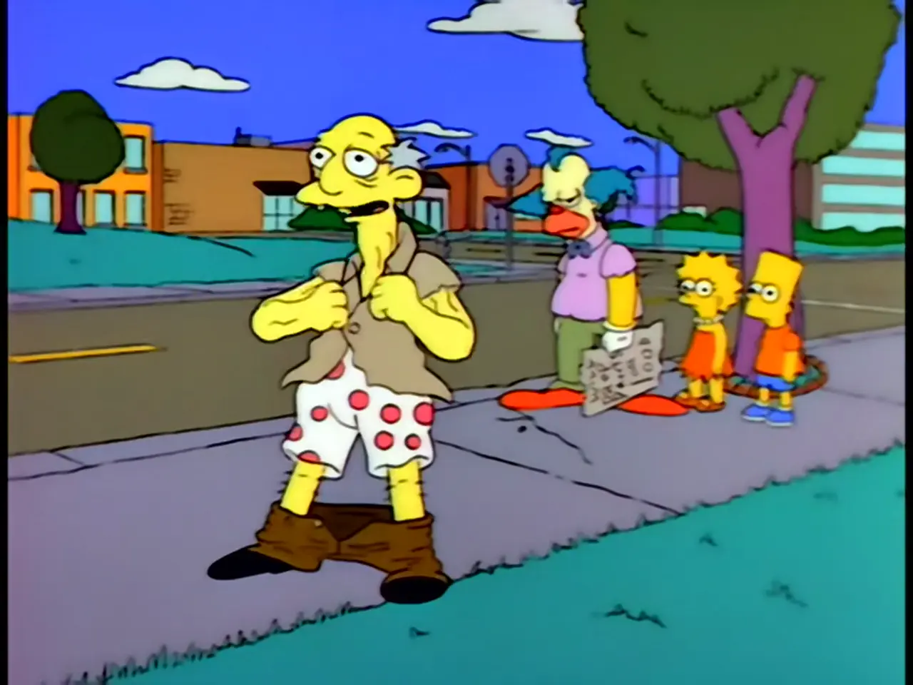 Sur le bord de la route, Bart et Lisa retrouvent Krusty en train de mendier. Touchés par sa détresse, ils le ramènent chez les Simpson et l’aident à retrouver la forme, autant physiquement que dans son numéro. Unis, ils élaborent un plan pour relancer la carrière de leur ami.
